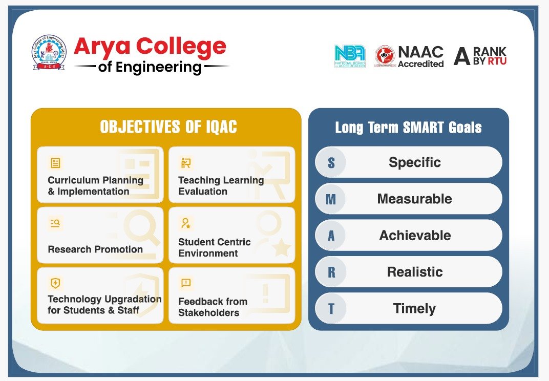 The IQAC shall be an integral part of the Institute which shall work towards realizing the Goals of Quality Enhancement by Developing Systems for conscious, consistent & catalytic improvement in different aspects of functioning of the institute.